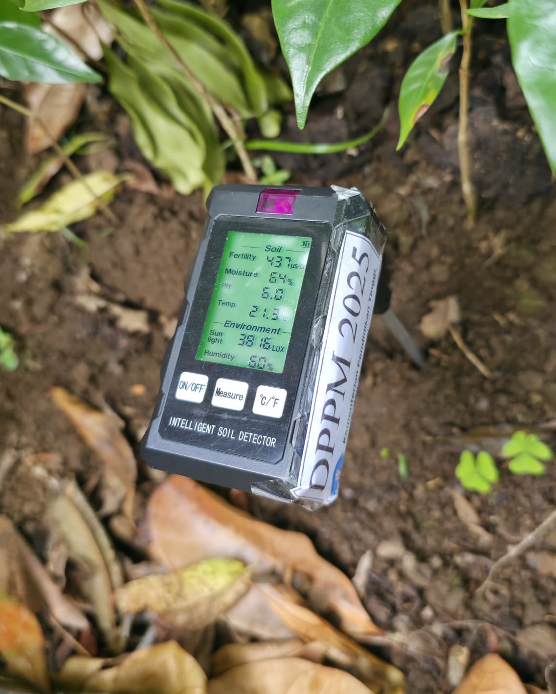 Sensor IoT yang dipasang di area perkebunan mengumpulkan data real-time tentang kesuburan tanah, pH, suhu tanah, kelembaban udara, dan intensitas cahaya.